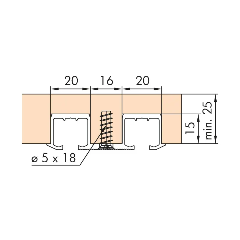 RAIL DE ROULEMENT SIMPLE CLIPO 16 H ENCASTRABLE – 053.3229.250 – HAWA
