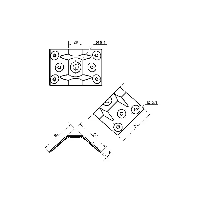 FERRURE DE TABLE 2 TROUS AVEC RETOURS – 252B125 – LUDMANN