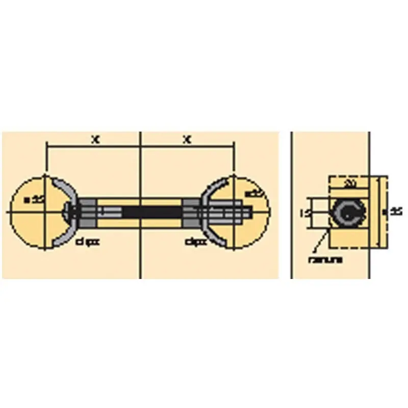 En acier chromaté. Perçage (mm) : Ø 35Longueur (mm) : 150Diamètre perçage 01 (mm) : 35Profondeur (mm) : 20