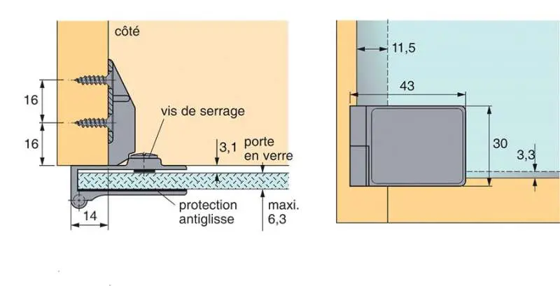 CHARNIERE POUR PORTE VERRE ET 5160 – 0 030 866 – HETTICH