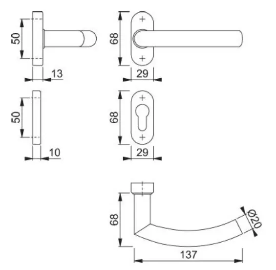 Rosace de fonction clé I Porte : 65 – 75Carré (mm) : 8