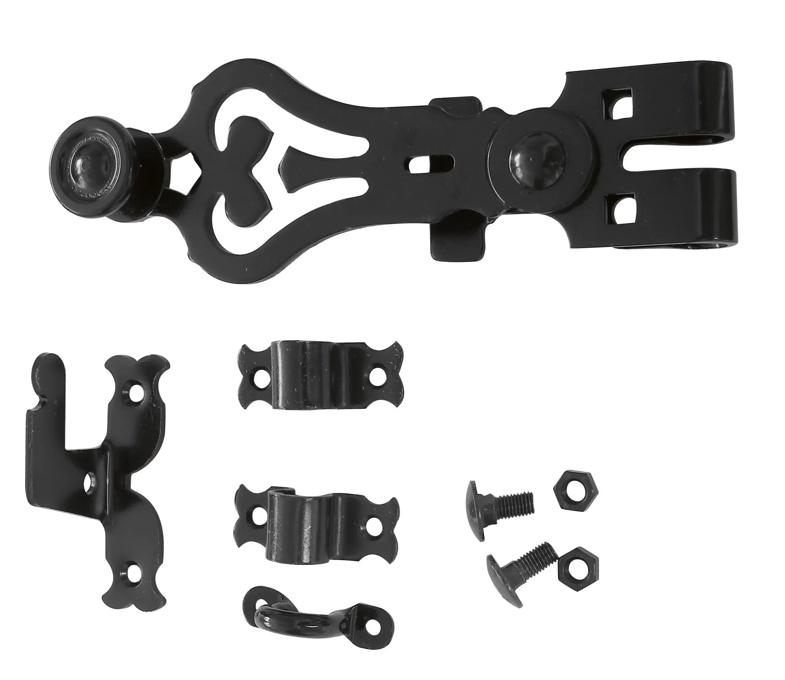 Sachet comprenant : 1 poignée montée sur panneton, 2 boulons, 2 lacets rustiques, 1 lacet fil rond, 1 support. Coloris : noir