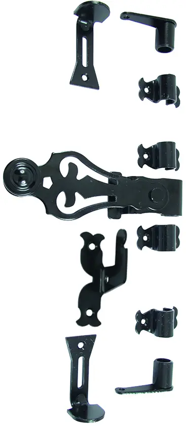 Sachet comprenant 1 poignée, 1 panneton, 1 sachet de visserie, 1 embout haut, 1 embout bas, 4 lacets rustiques, 1 support, 2 dardennes coudées.