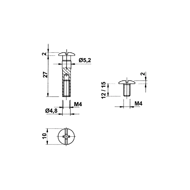 VIS DE JONCTION M4 X 15 NICKELEE (SERRAGE 38 MM) – 20811020YA – ITALIANA FERRAMENTA