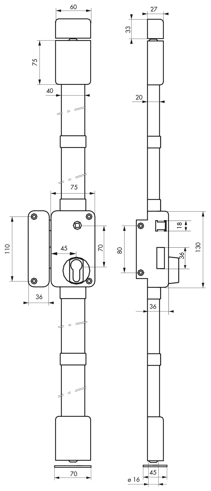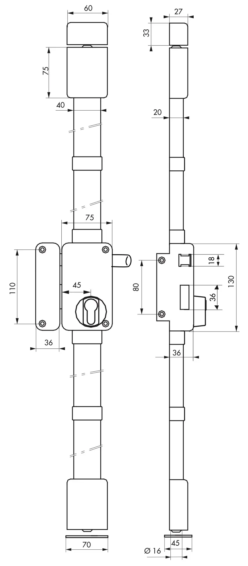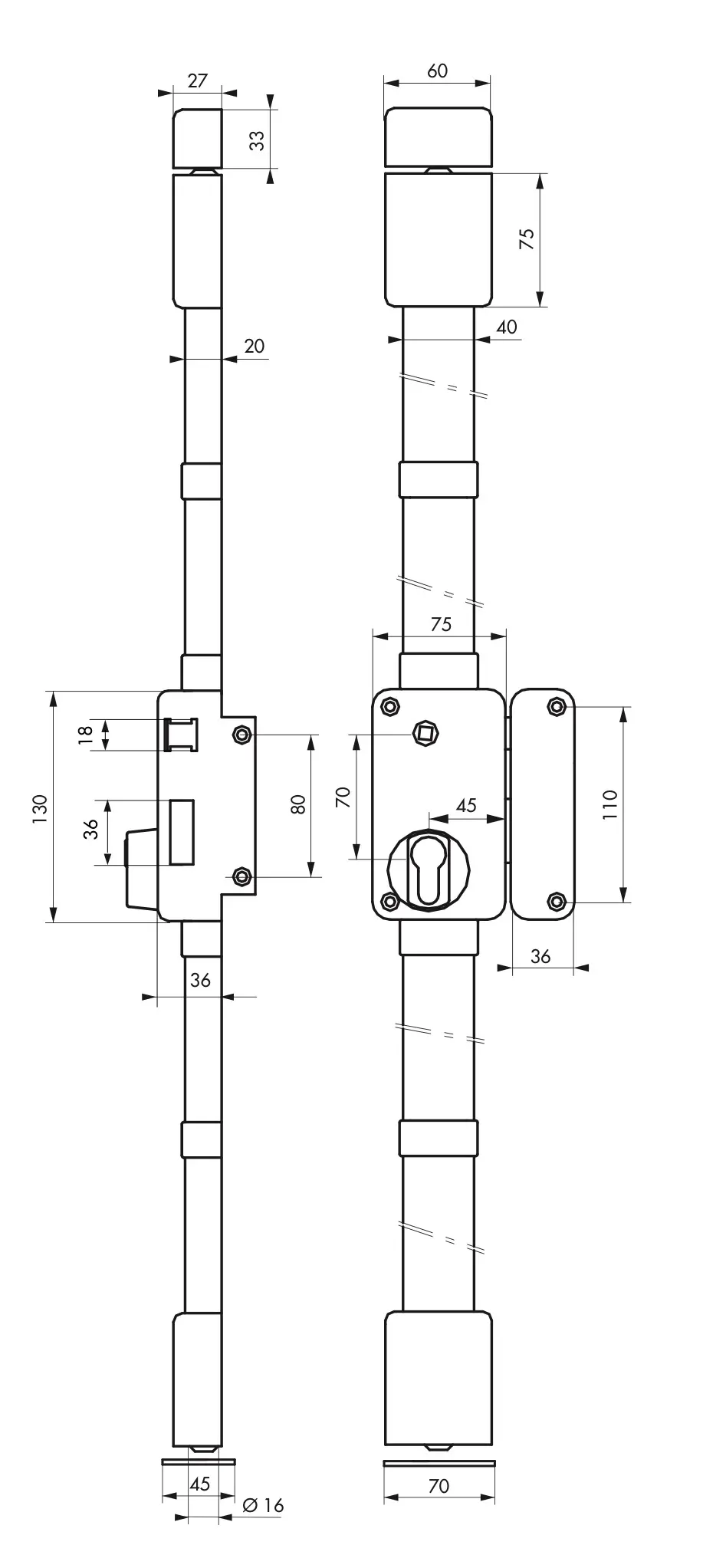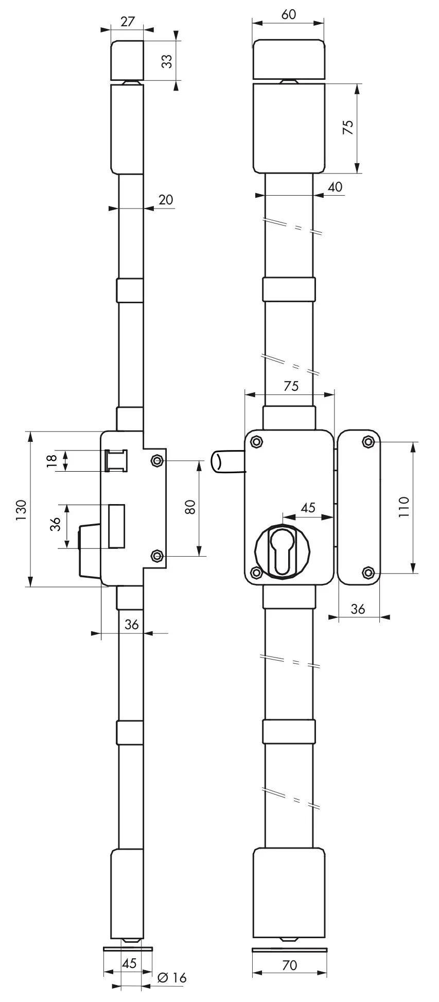 SERRURE EN APPLIQUE 3 PTS BELUGA VERTICALE A FOUILLOT HAUT 2250 MM MARRON GAUCHE – 049520 – THIRARD