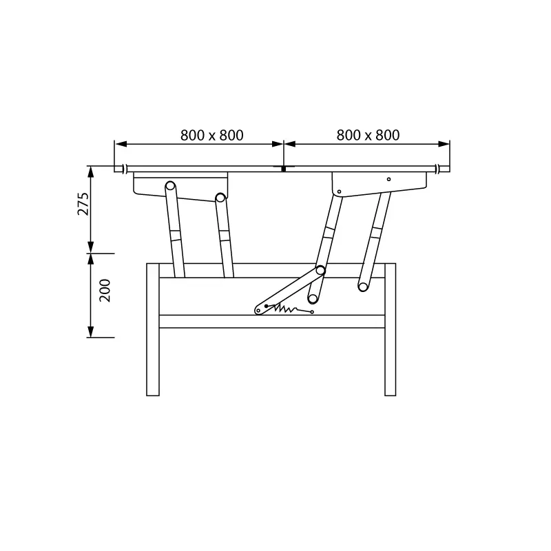 Ce mécanisme permet de surélever le plateau d’une table basse et de doubler sa surface grâce à son système de double plateau.