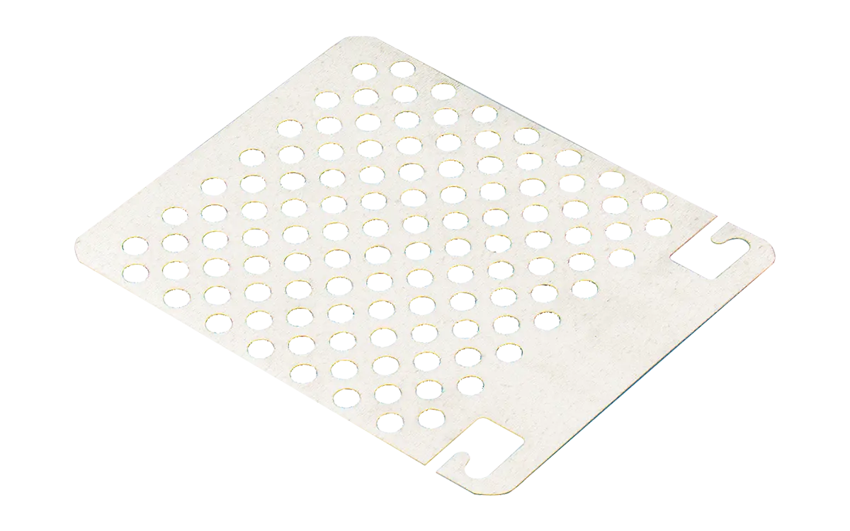 grille en tôle emboutie et poinçonnée, pour rouleaux de peinture. Longueur (mm) : 130