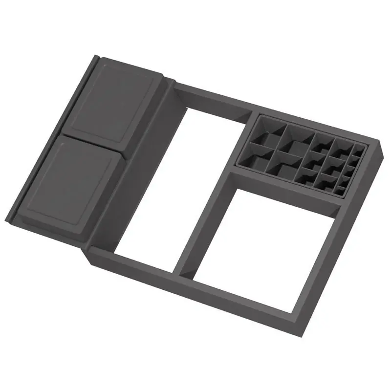 Idéal pour léquipement des tiroirs de salle de bain ou de dressing.Largeur extensible. Hauteur dencombrement mini 70mm, maxi 90mm.Cadre et accessoires en plastique.Le bac range cosmétiques peut être posé et coulisser sur le bac porte objets.Le choix daccessoires et leur nombre varient suivant la dimension du module.Accessoires disponibles suivant taille du module :- 1 cadre hauteur 69mm et longueur extensible de 70mm.- 1 bac dextrémité hauteur 53mm.- 2 ou 4 boites avec couvercle 114mmx90mmx65mm.- 1 bac range cosmétiques 138mmx73mmx40mm.Et suivant version :- 1 bac porte objets longueur 270mm, largeur 140mm, hauteur 40mm.- 1 distributeur à mouchoirs longueur 288mm, largeur 158mm, hauteur 90mm. Pour tiroir de profondeur (mm) : 450Décor : GrisProfondeur (mm) : 422Largeur mini (mm) : 436Largeur maxi (mm) : 506