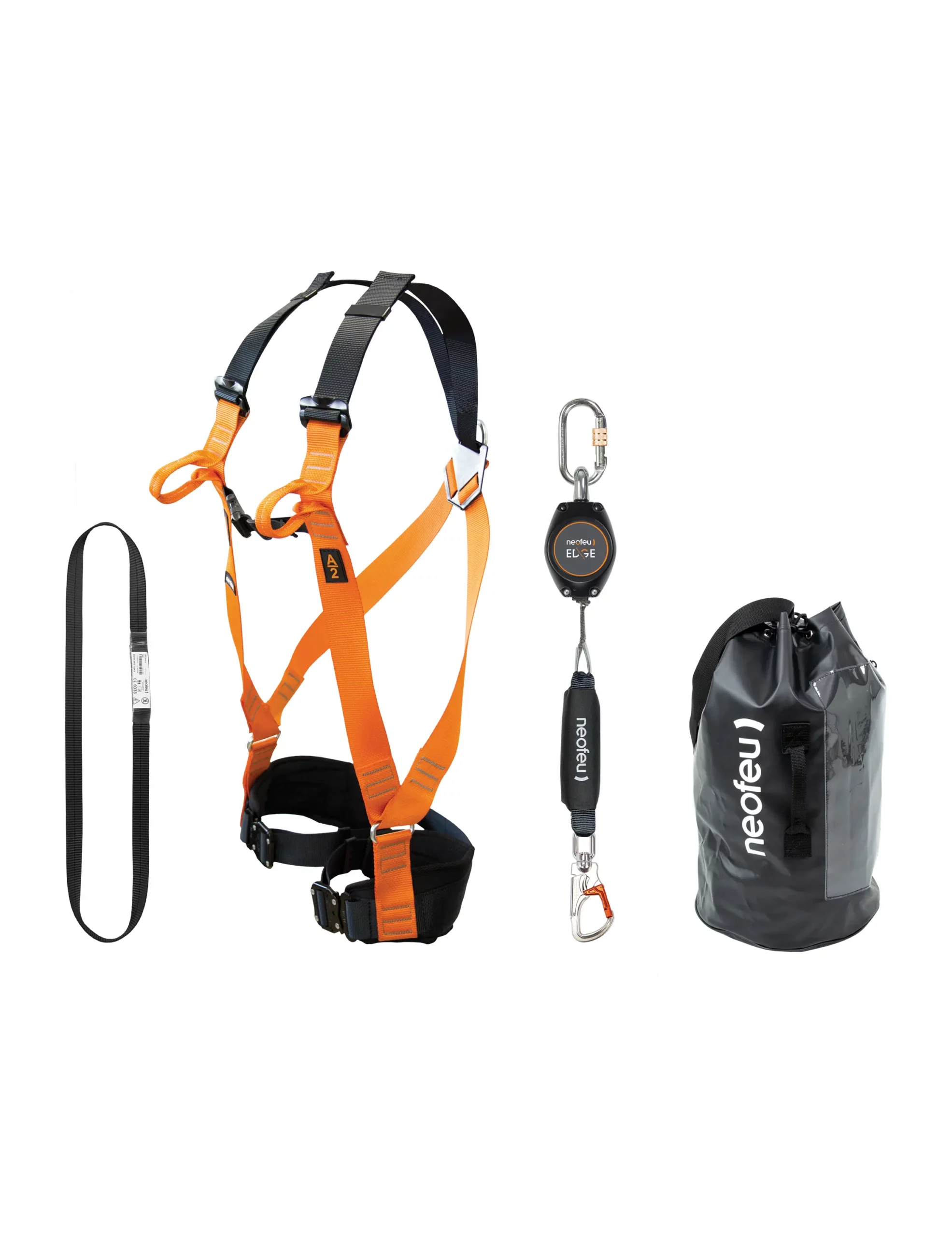 Kit muni d’un antichute à rappel automatique permettant à l’utilisateur une mobilité sur une distance maximale