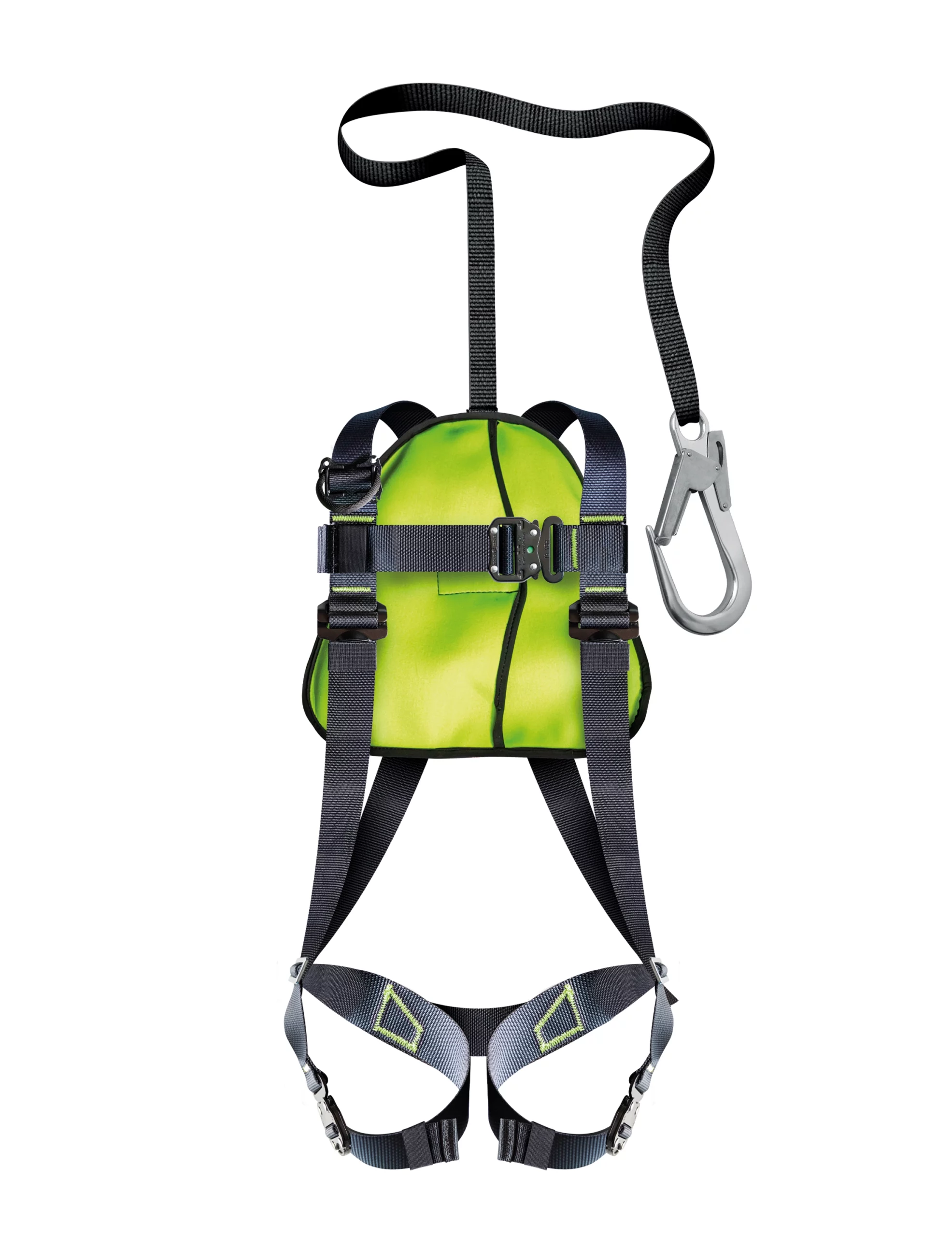 composé également d’un harnais antichute confort 2 points (frontal et sternal),