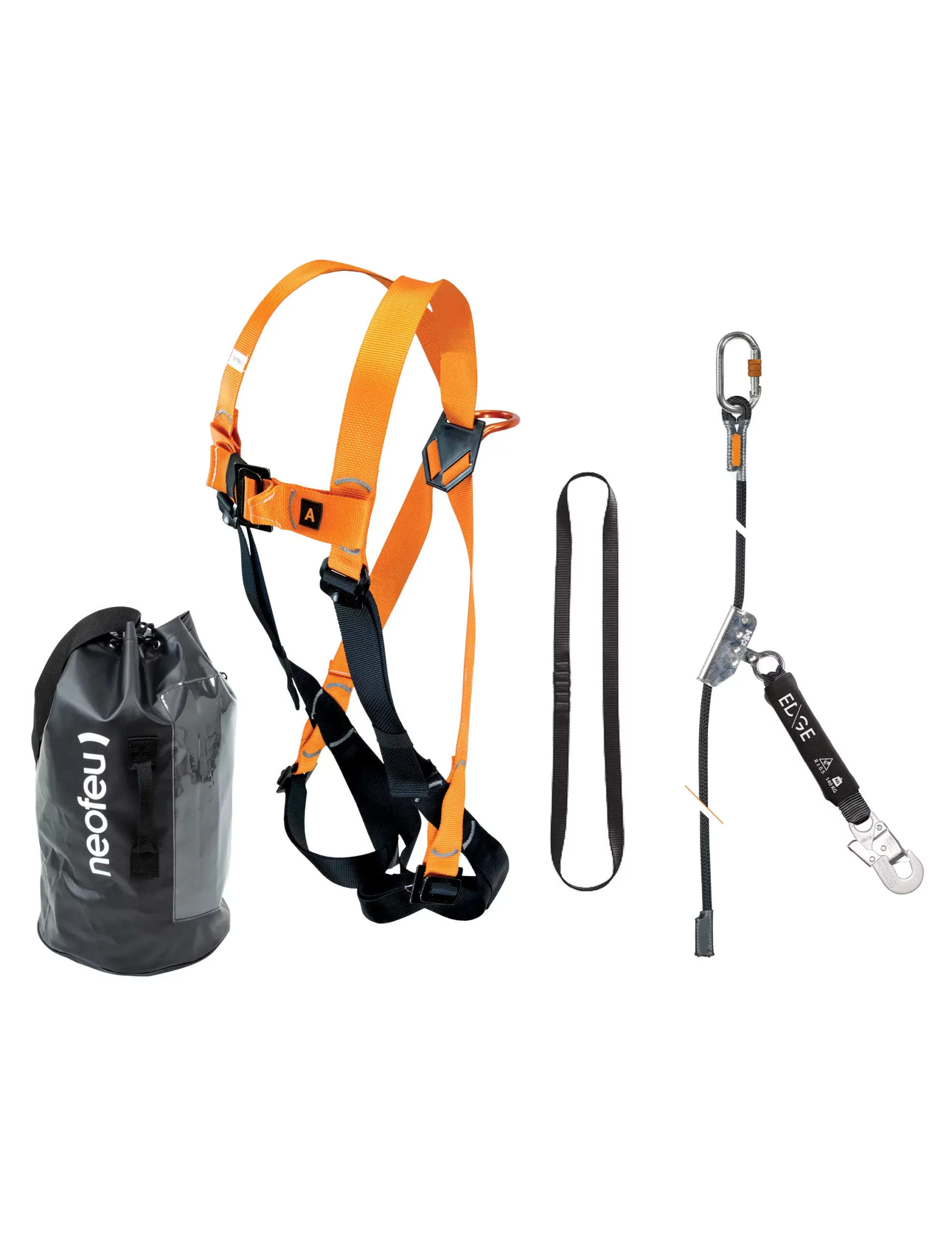 (dorsal et sternal), d’un antichute mobile sur cordage de 10m, d’un anneau de sangle 1m et d’un sac de transport.