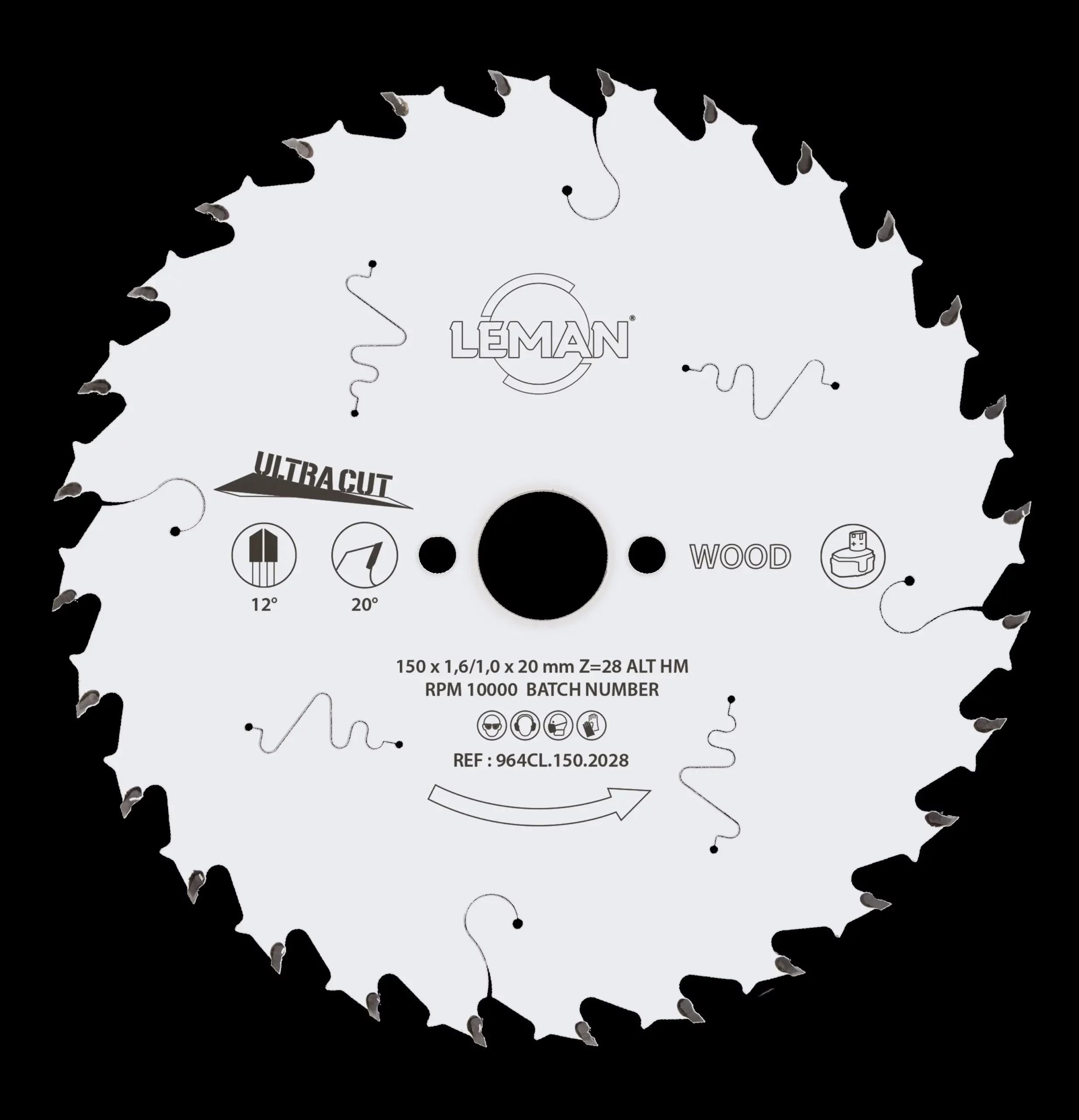 LAME CIRCULAIRE HM FINE BOIS MASSIF D136X20X1,6 24Z ALT POS BOIS LSC.964CL.W – 964CL.136.2024 – LEMAN