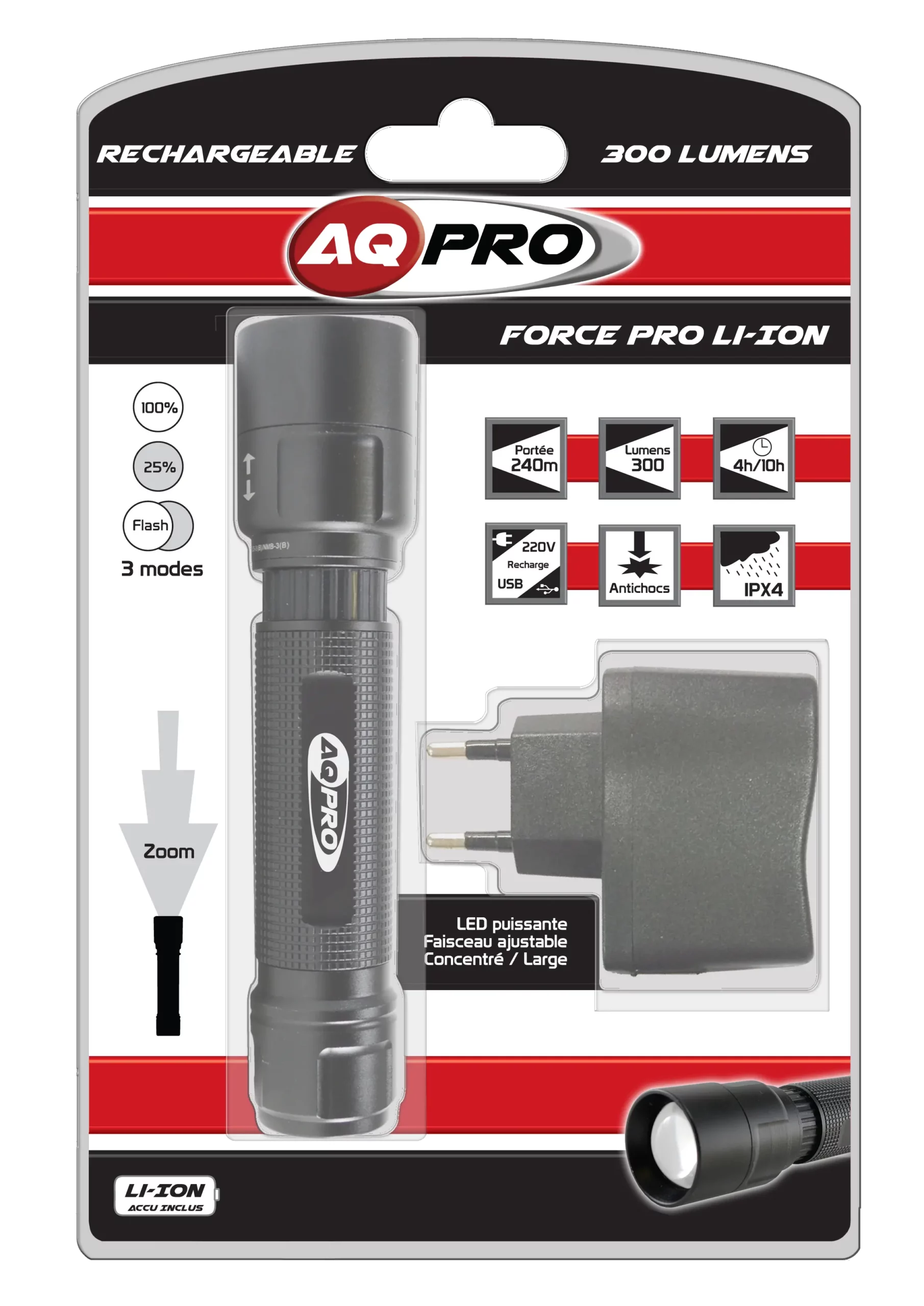 dimensions : 34 x 60 x 122 mm. Intensité lumineuse (lm) : 220Poids (gr) : 180Fonctionnement : batterie rechargeableMatière principale : plastiqueAmpoule : LED