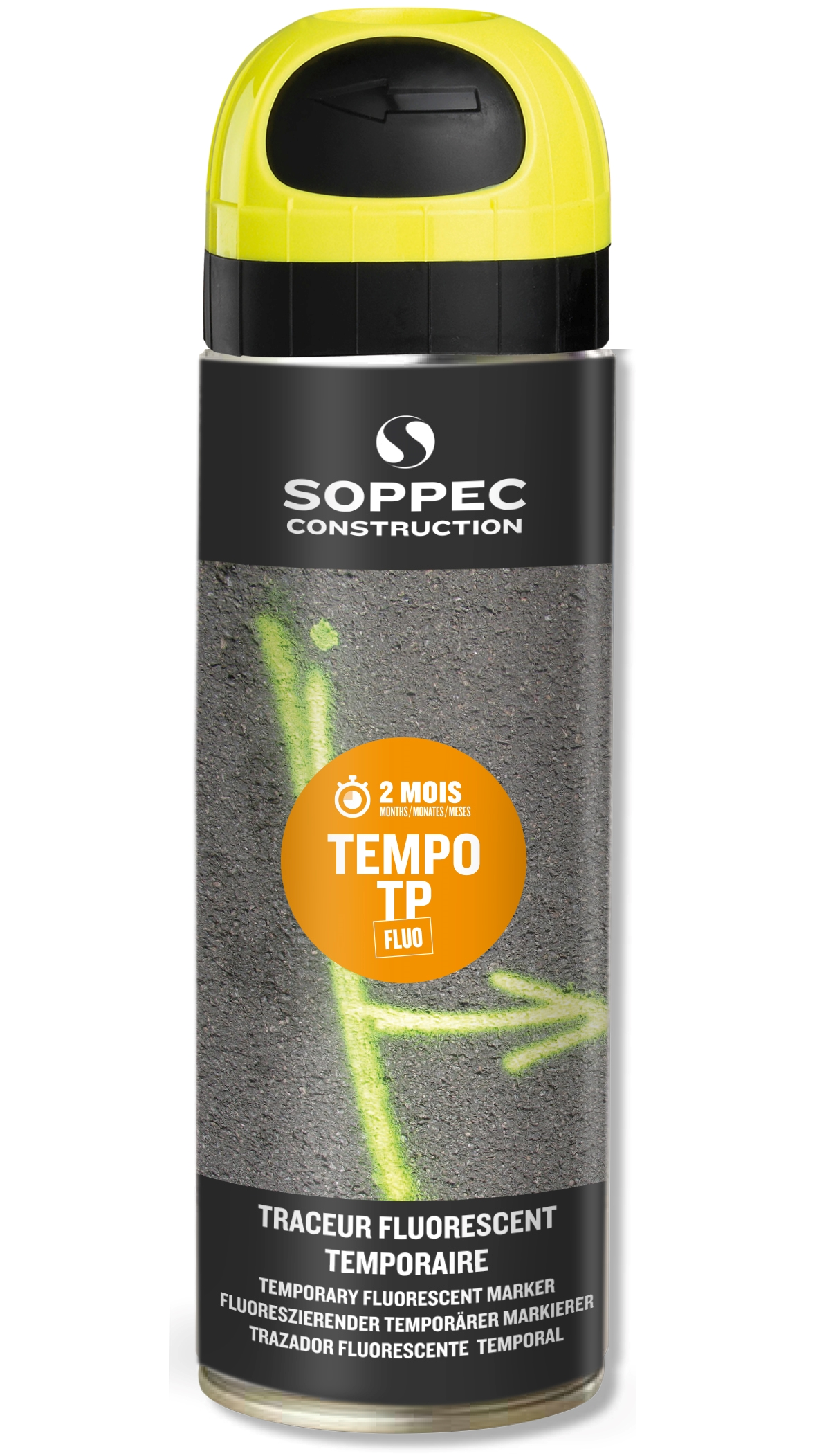 Découvrez MARQUEUR TEMPORAIRE TEMPO TP JAUNE FLUO 650ML – 141617O – SOPPEC de SOPPEC, réf. 141617O. Marquage temporaire fluorescent (tenue moyenne 2 à 8 semaines)