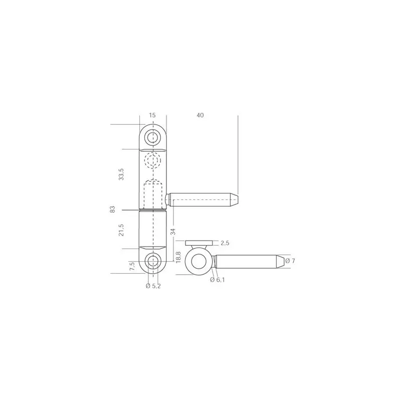Paumelle inox 100/86A ouverte, roulée avec broche et bague inox.