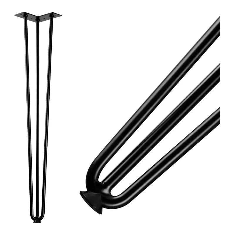 Pied pour meuble ou table de forme épingle.Capacité de charge pour 4 pieds, environ 100Kgs. Décor : NoirHauteur (mm) : 710Version : Lisse
