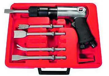 Utilisé couramment pour les travaux de burinage, de poinçonnage, pour la découpe des tôles ou des rivets ainsi que pour des opérations de foulage de maçonnerie, le nettoyage des bétonnières et des camions toupies