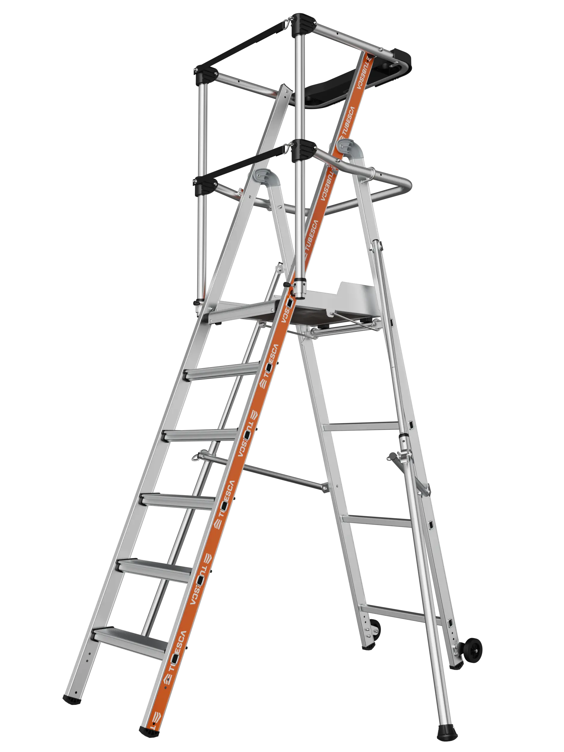 stabilisateurs rétractables à réglage millimétrique. Poids (kg) : 23,7Hauteur de travail (m) : 3,63Nombre de marches : 7Hauteur repliée (m) : 3,08Hauteur plate-forme (m) : 1,63