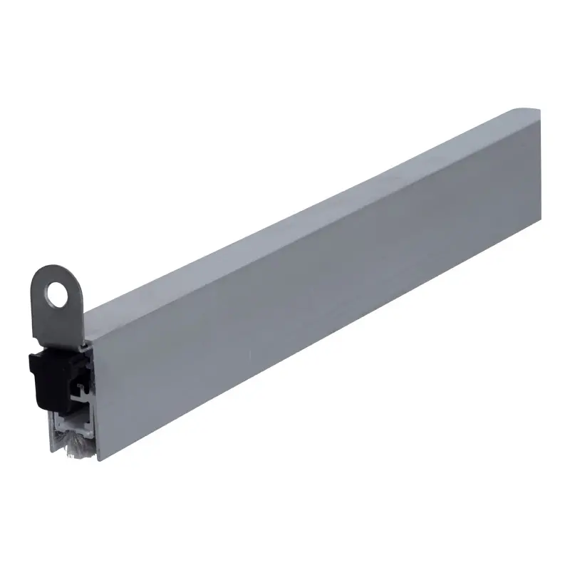 Bas de porte automatique en aluminium muni d’une brosse en velours doux.