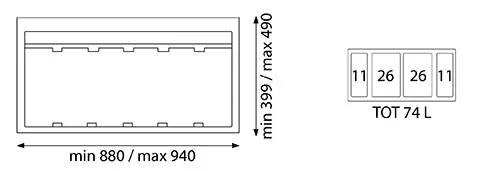 POUBELLE SELECTIVE POUR CAISSON DE 900MM – 9XLBASE900APD – GOLLINUCCI
