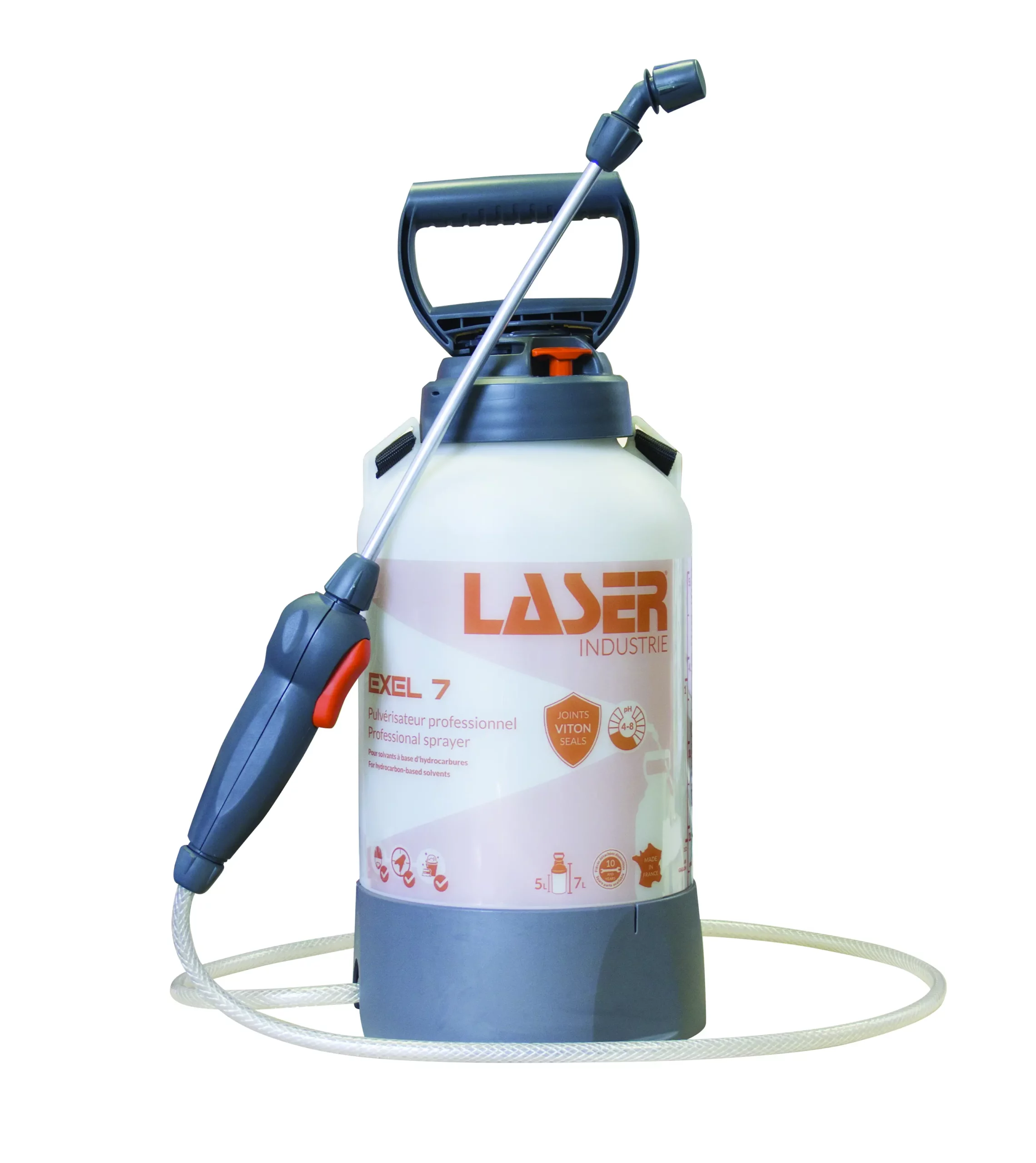 grande poignée de pompage pour une meilleure prise en main et permettant le lancement de la lance. Modèle : laser excel 7 VITONContenance (L) : 5