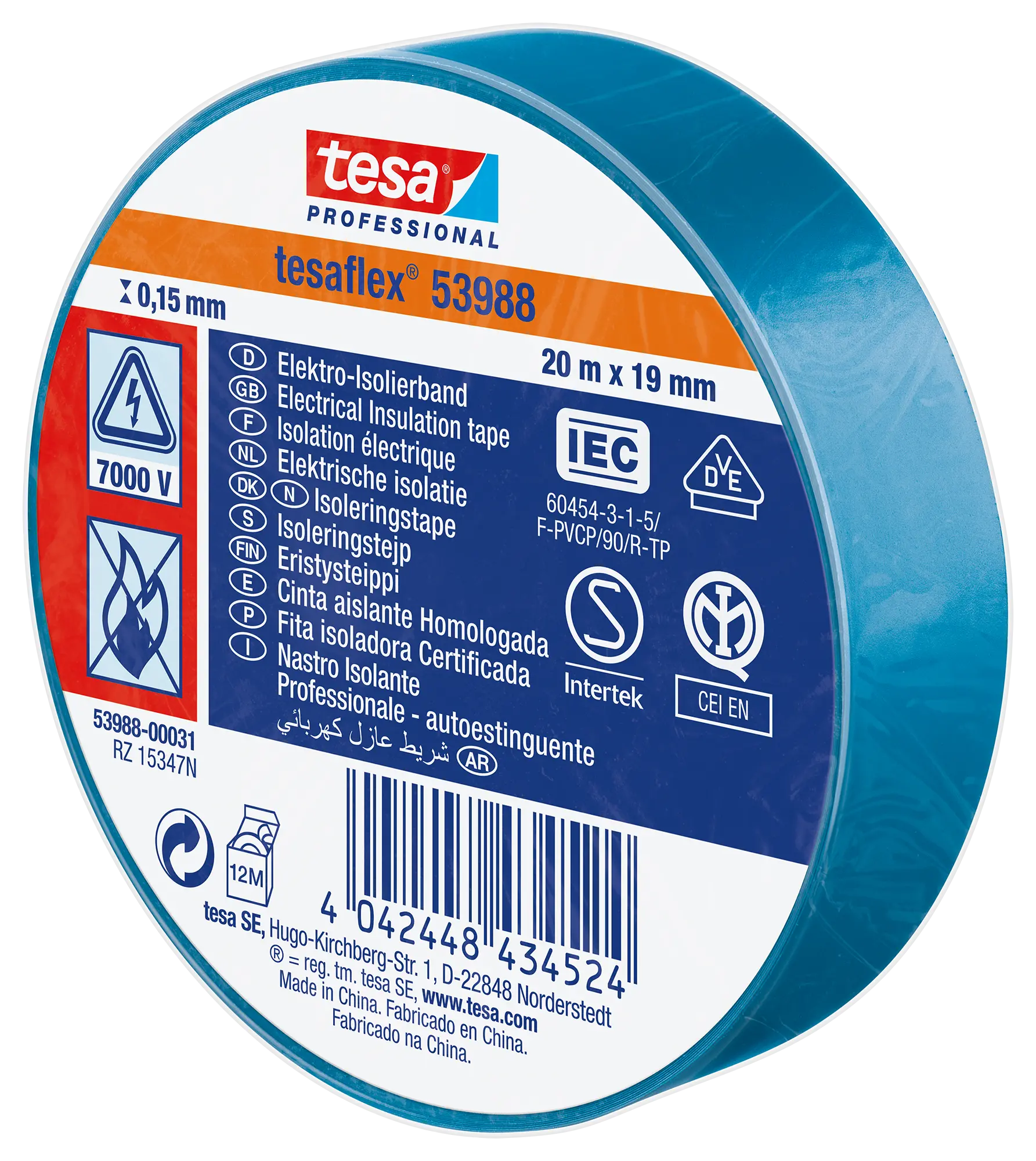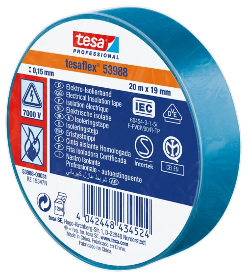 RUBAN D'ISOLATION ELECTRIQUE 53988 20 M X 19 MM BLEU - TESA - 53988-00031-00