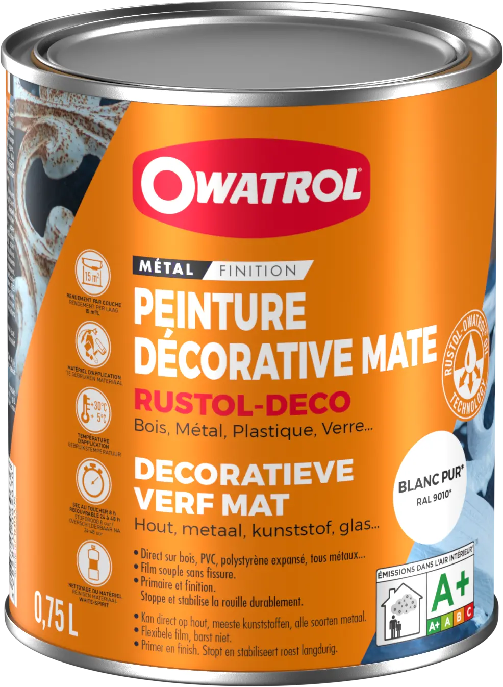 RUSTOL DECO BLANC MAT RAL 9010 (0.75L) - 1631AA/NL - OWATROL