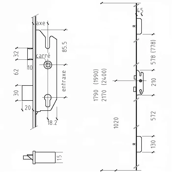 SERRURE A LARDER BOUTS RONDS – 27928000 – VACHETTE – ASSA ABLOY AUBE ANJOU S.A.