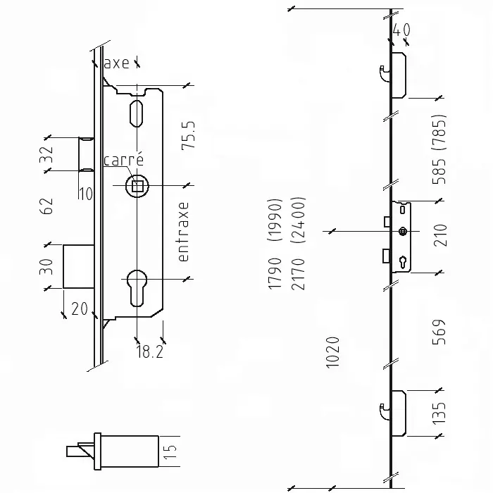 SERRURE A LARDER AXE 40 BEC DE CANE – NA02611611 – METALUX