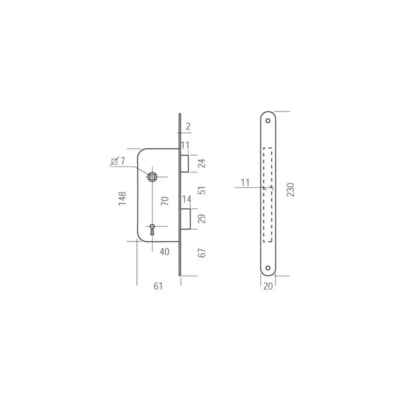 SERRURE A MORTAISER CLE I MULTIBAT AXE40MM BR DROITE TET NTR 20MM SS GACHE – 218300-02-1J – JPM S.A.