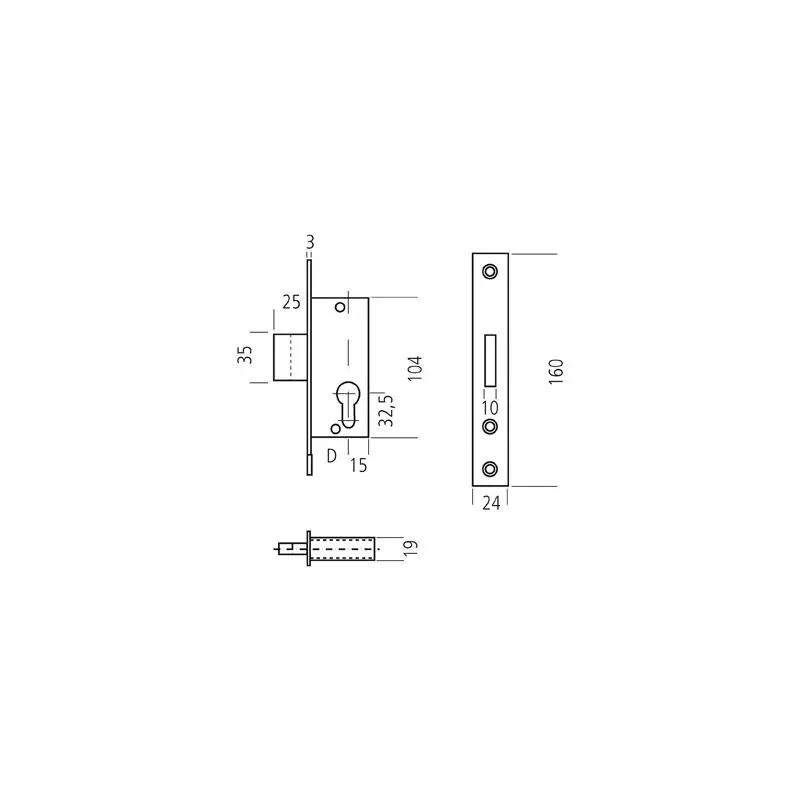 SERRURE SERIE 7 PENE DORMANT+1/2T LARG 39,5MM – F107390000 – DOM METALUX