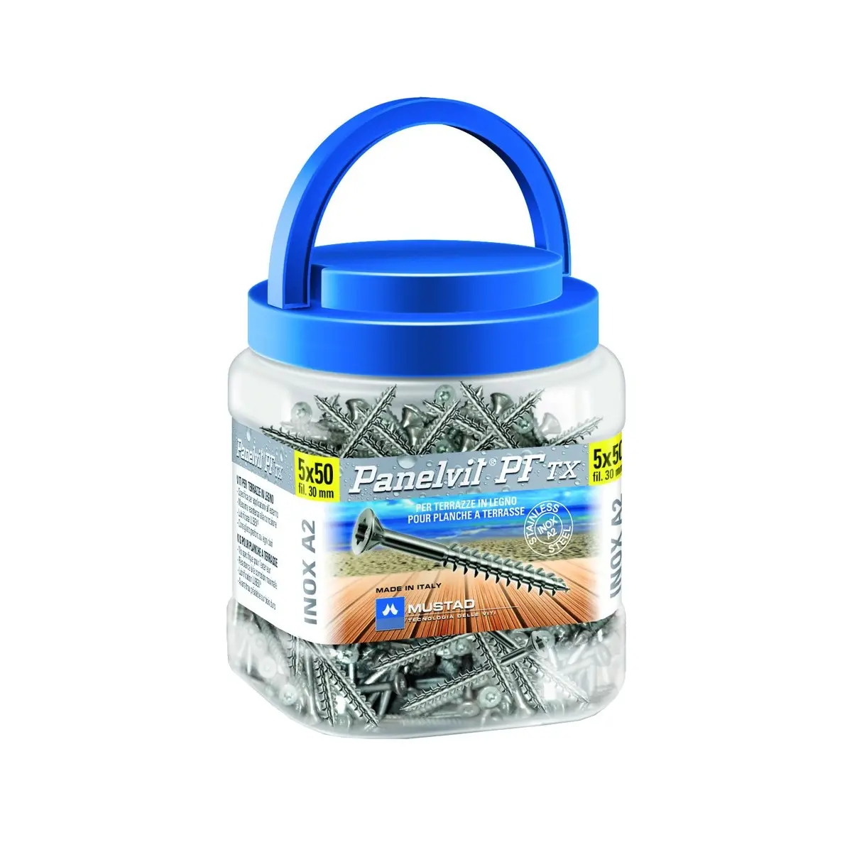 VIS TERRASSE INOX A2 PANELVIT® FP TR TX 5x50 BTE 400 + EMBOUT INOX - PF340I500500PSB - MUSTAD